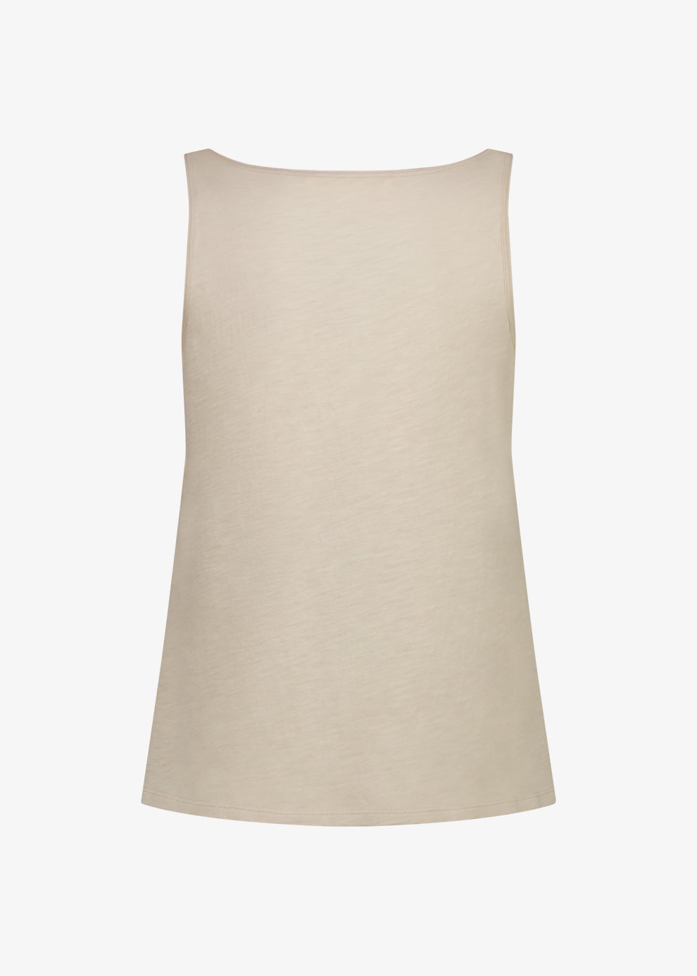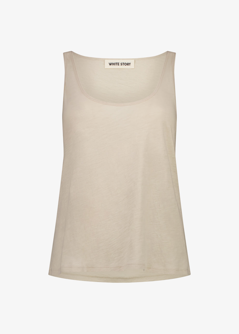 This essential tank is crafted from 100% cotton and features a round scoop neck. Designed to become a lightweight staple in your summer collection.