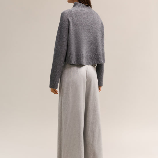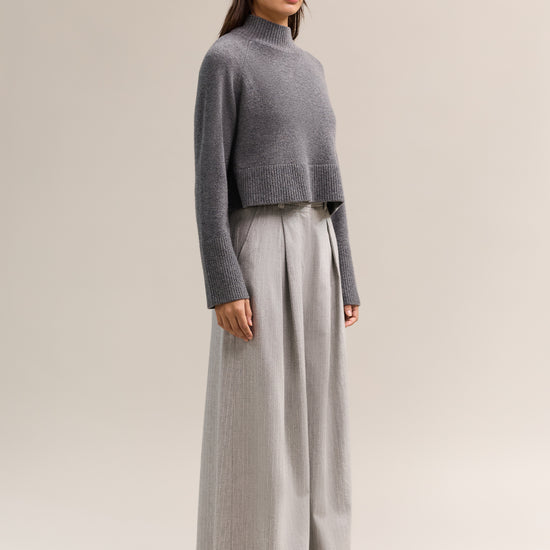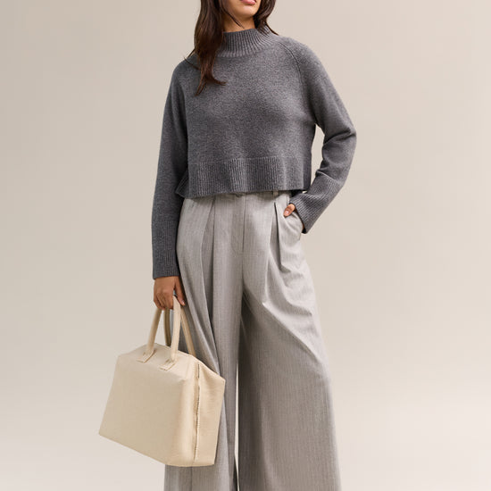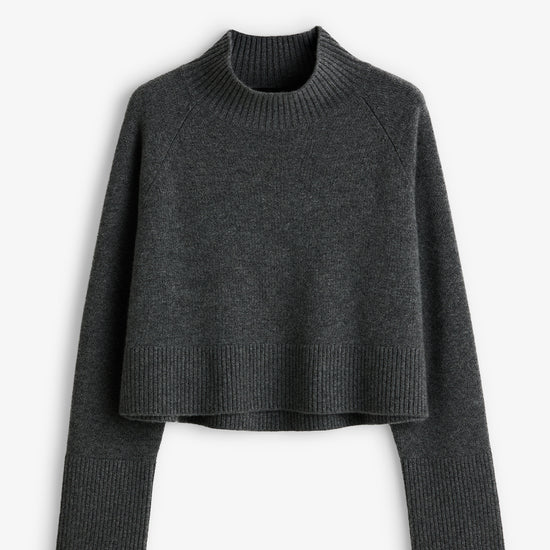 Our signature 100% cashmere is cropped, offering a seasonless take on our longer style. Designed to fit off the body, with a high neckline and room to layer as the seasons change. Featuring ribbed detailing at neckline and cuffs, the Asha is versatile and functional.