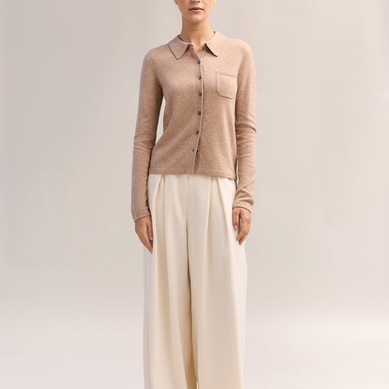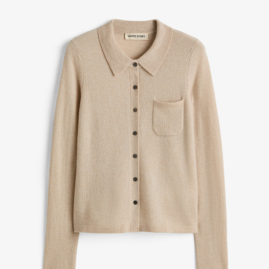 The Dene Knit Shirt is a relaxed knit style crafted from a soft wool-cashmere blend. Warm, breathable, and perfect for layering through cold winter days, it features a cropped length, front button placket, and patch pocket for effortless versatility.