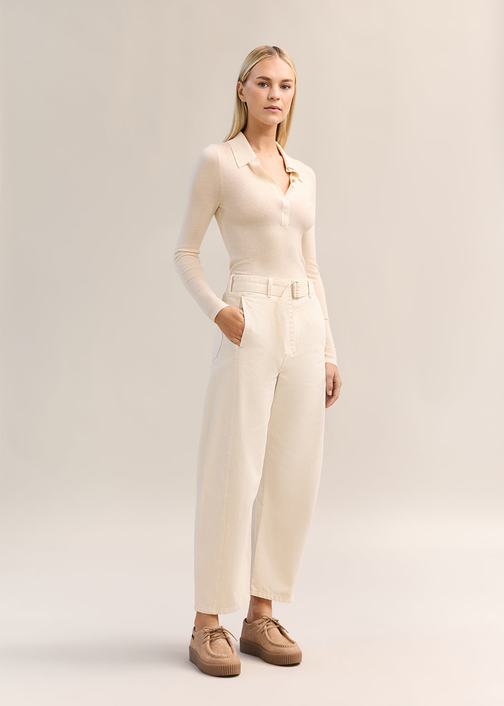 Eleanor Half Placket Top Ecru