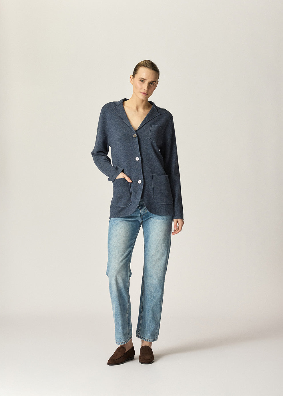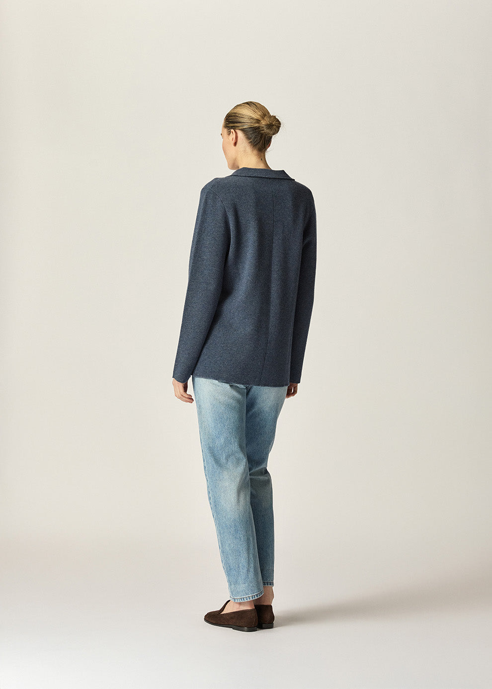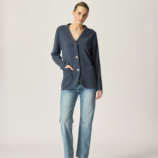 The Elsa Knit Blazer is a relaxed layering piece crafted from a soft wool and cashmere blend. With a classic blazer silhouette, it drapes effortlessly for a polished yet comfortable finish.