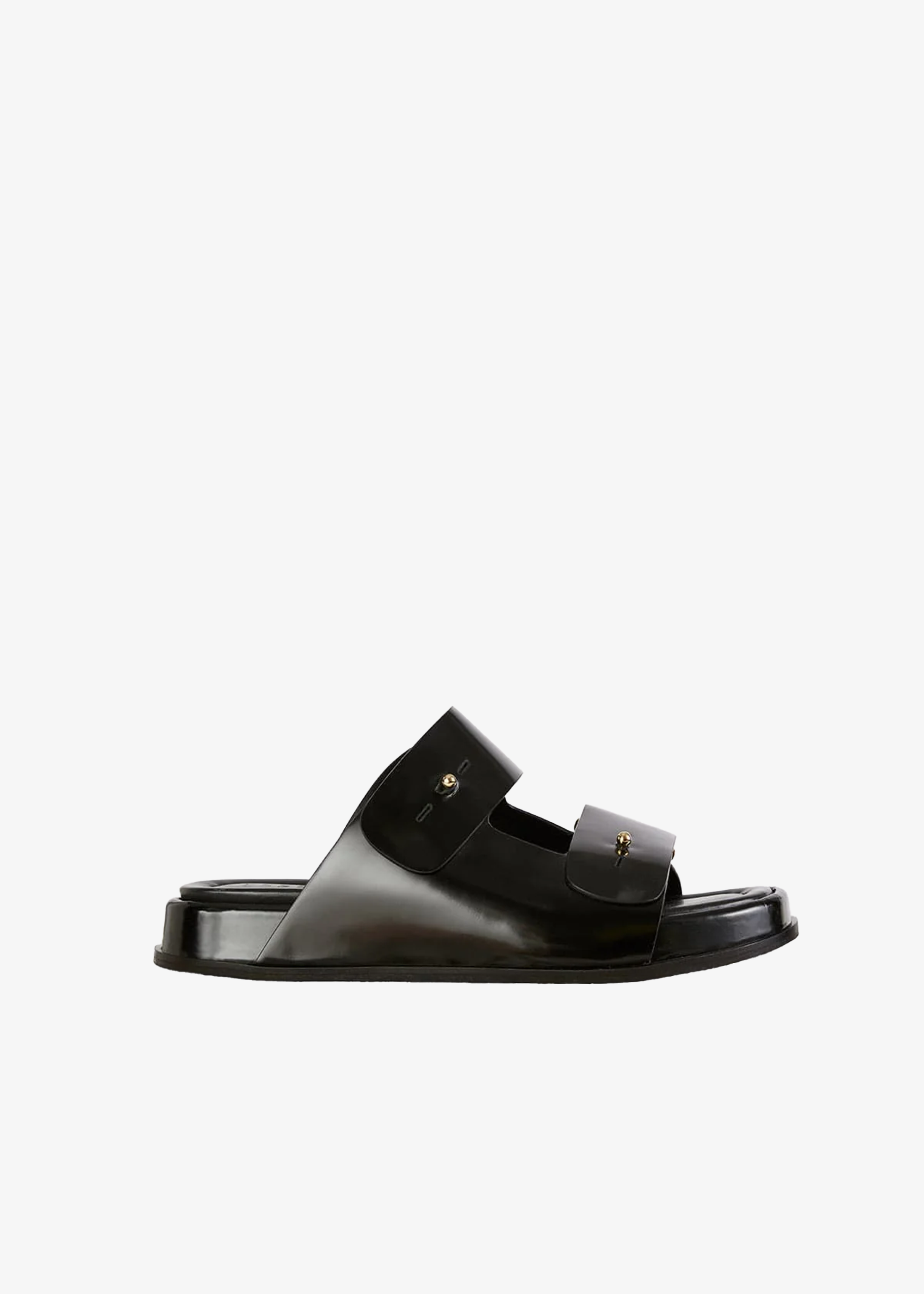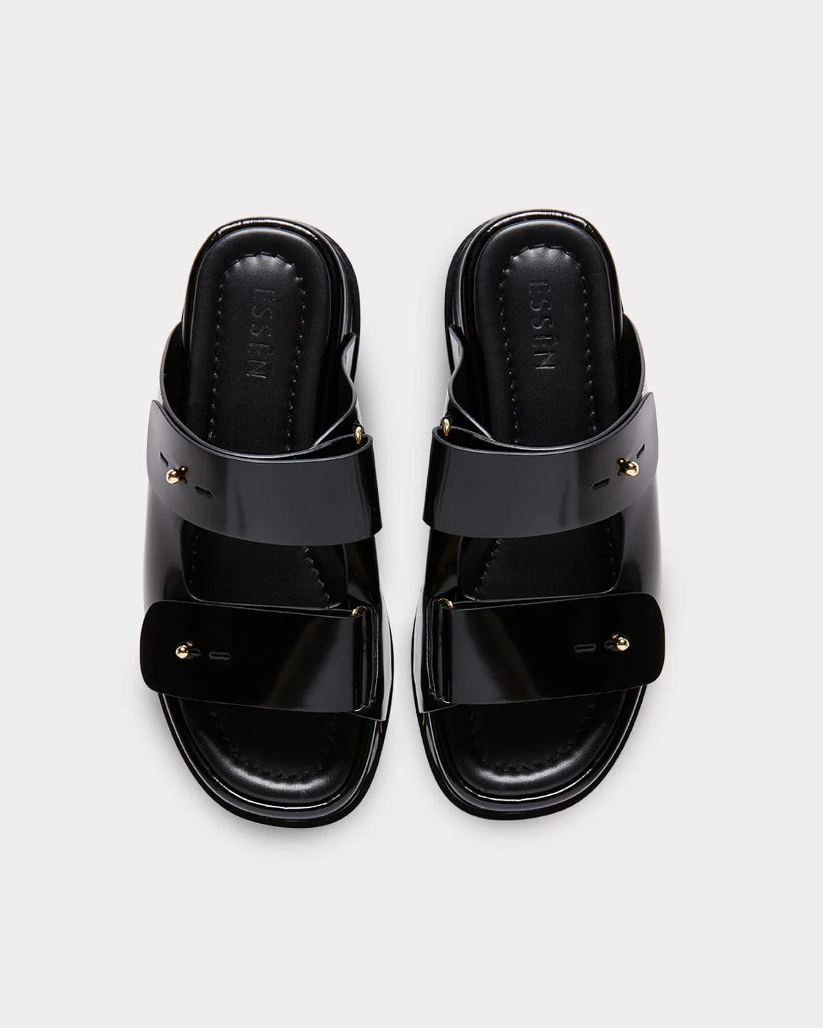 Discover the effortless elegance of the Chunky Slide from ESSĒN. Crafted in Italy from premium abrasivato leather, these slides offer a perfect blend of style and comfort. The sleek metal accents and slip-on design make them a versatile addition to your wardrobe.