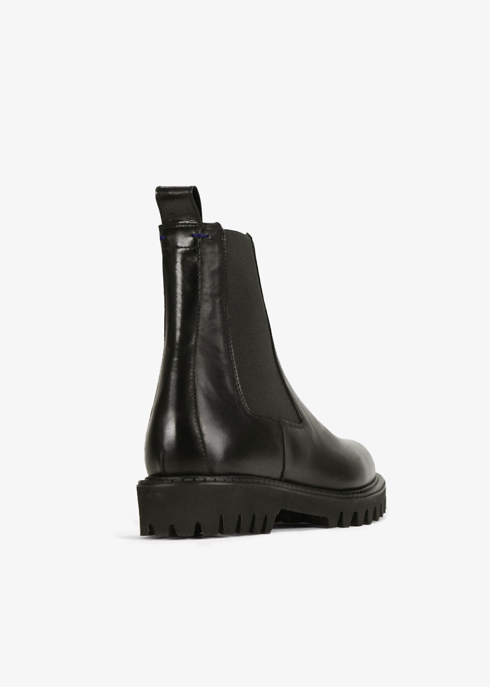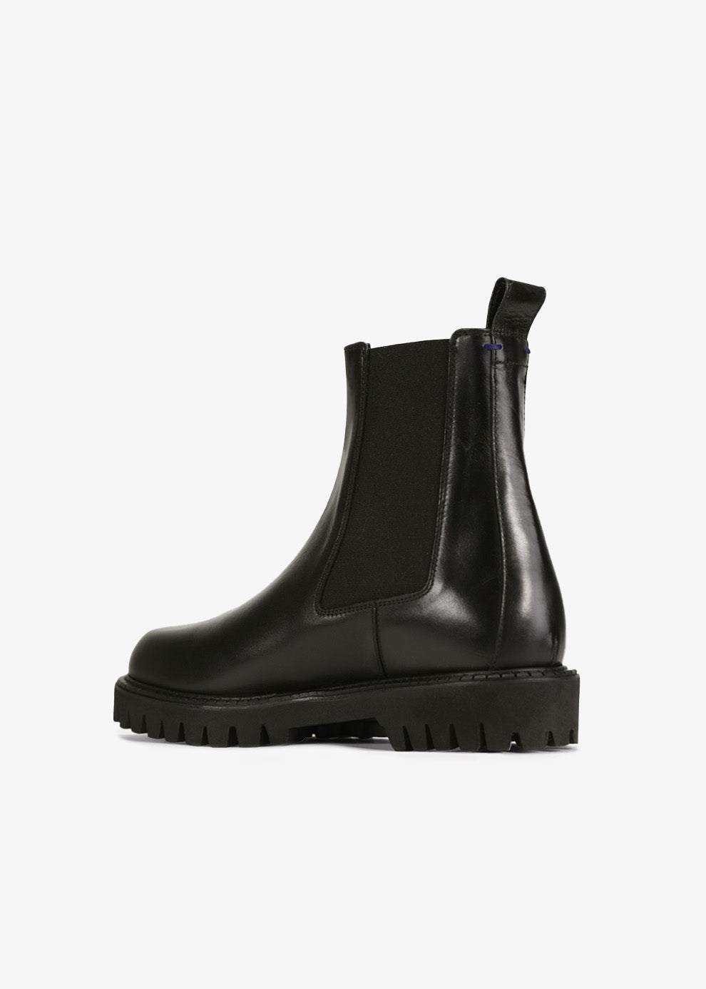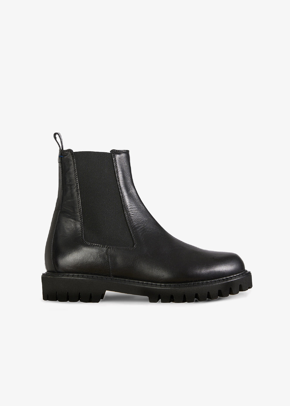 This modern Chelsea Boot by ESSEN blends form and function in a reimagined take on a timeless staple. Meticulously crafted in Italy from supple, smooth leather, this slim profile boot is both sleek and durable. Classic elasticated side panels offer ease of wear, while its all weather design ensures year round versatility. A sophisticated essential, it’s built for everyday elegance.