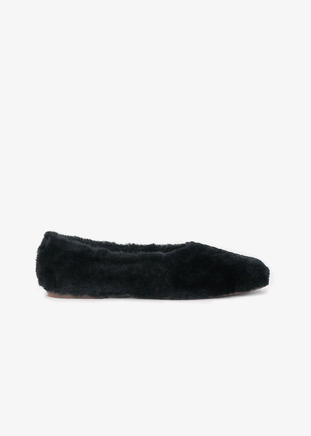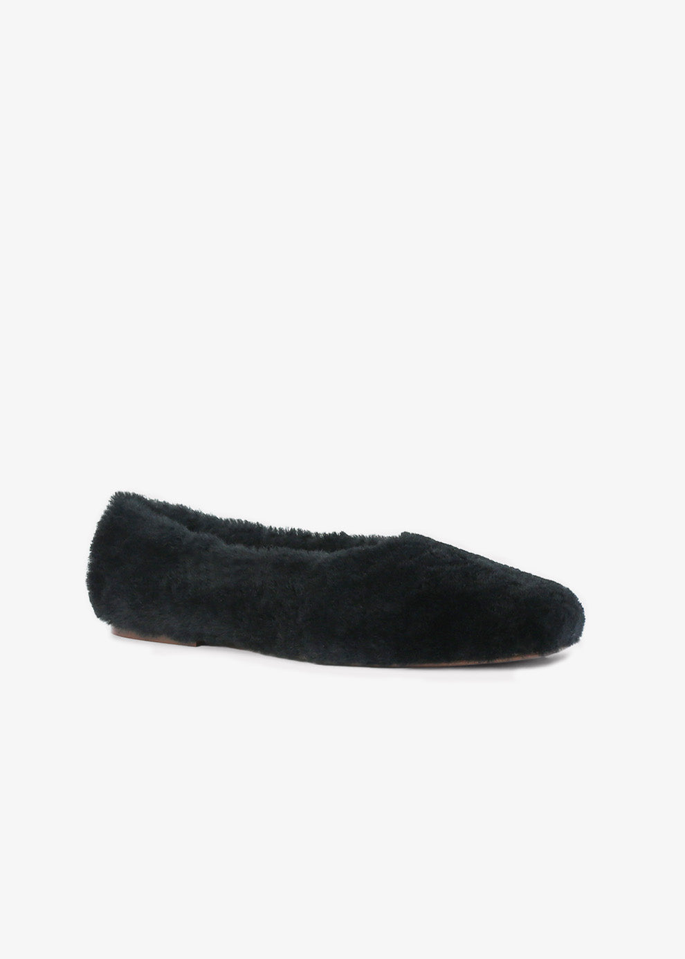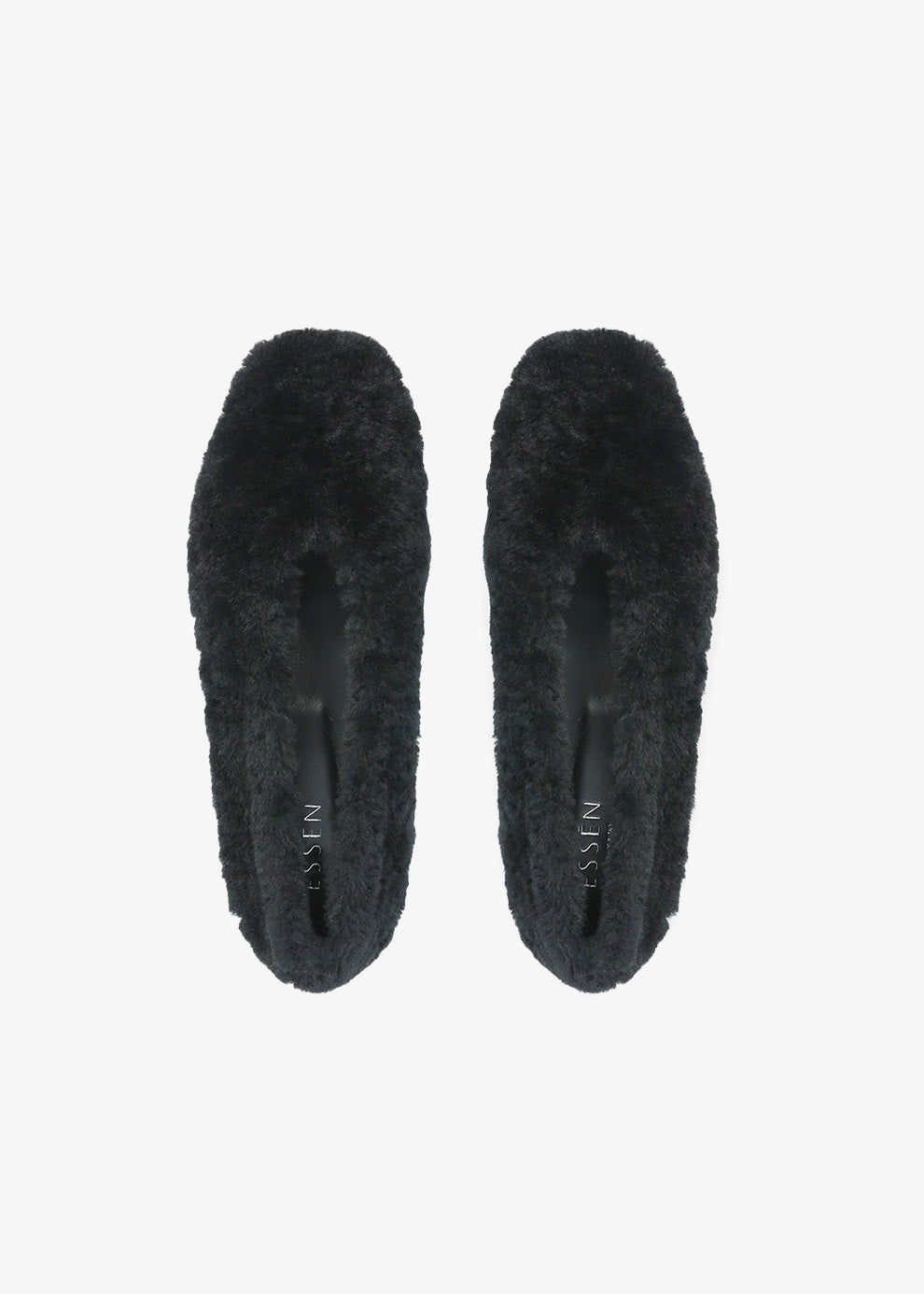 The Shearling Ballet Flat by ESSEN offers indulgent comfort with understated elegance. Handmade in Italy from buttery-soft leather and lined with black shearling, this style can be worn as a luxurious house slipper or textural ballet flat.