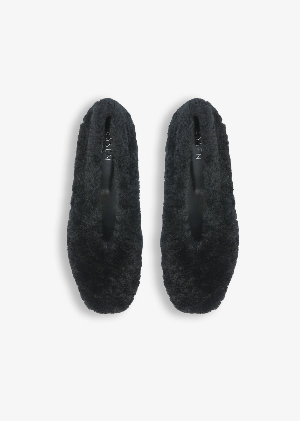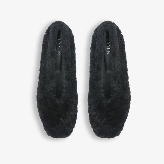 The Shearling Ballet Flat by ESSEN offers indulgent comfort with understated elegance. Handmade in Italy from buttery-soft leather and lined with black shearling, this style can be worn as a luxurious house slipper or textural ballet flat.