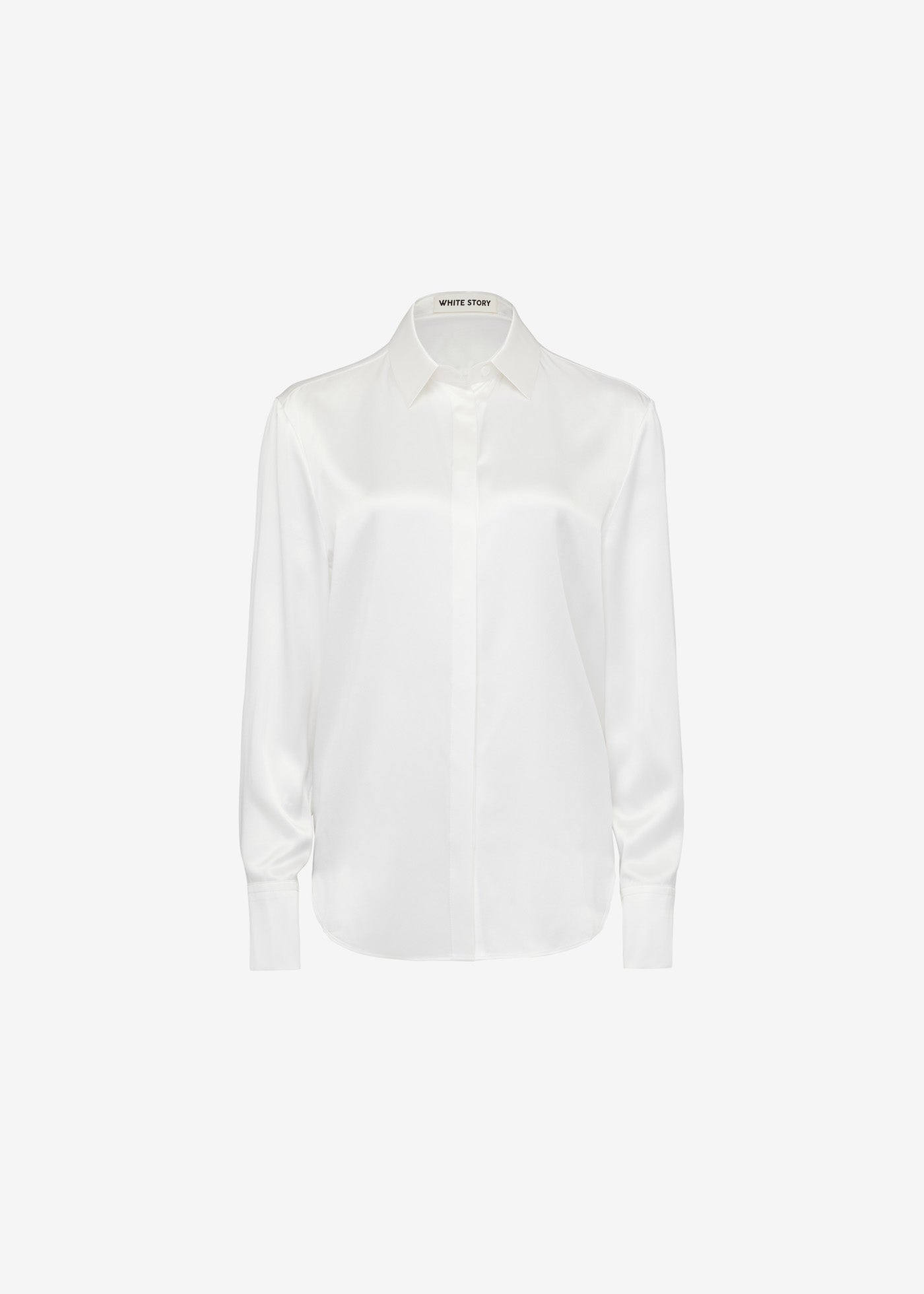 A classic dinner shirt, this White Story classic is fabricated in 100% silk. Designed for a loose fit, details include a standard collar and cuff, concealed placket and a curved hem. Tuck into a tailored pant for a dinner event, or loosely undone with denim for an everyday look. Available in multiple seasonal colours.