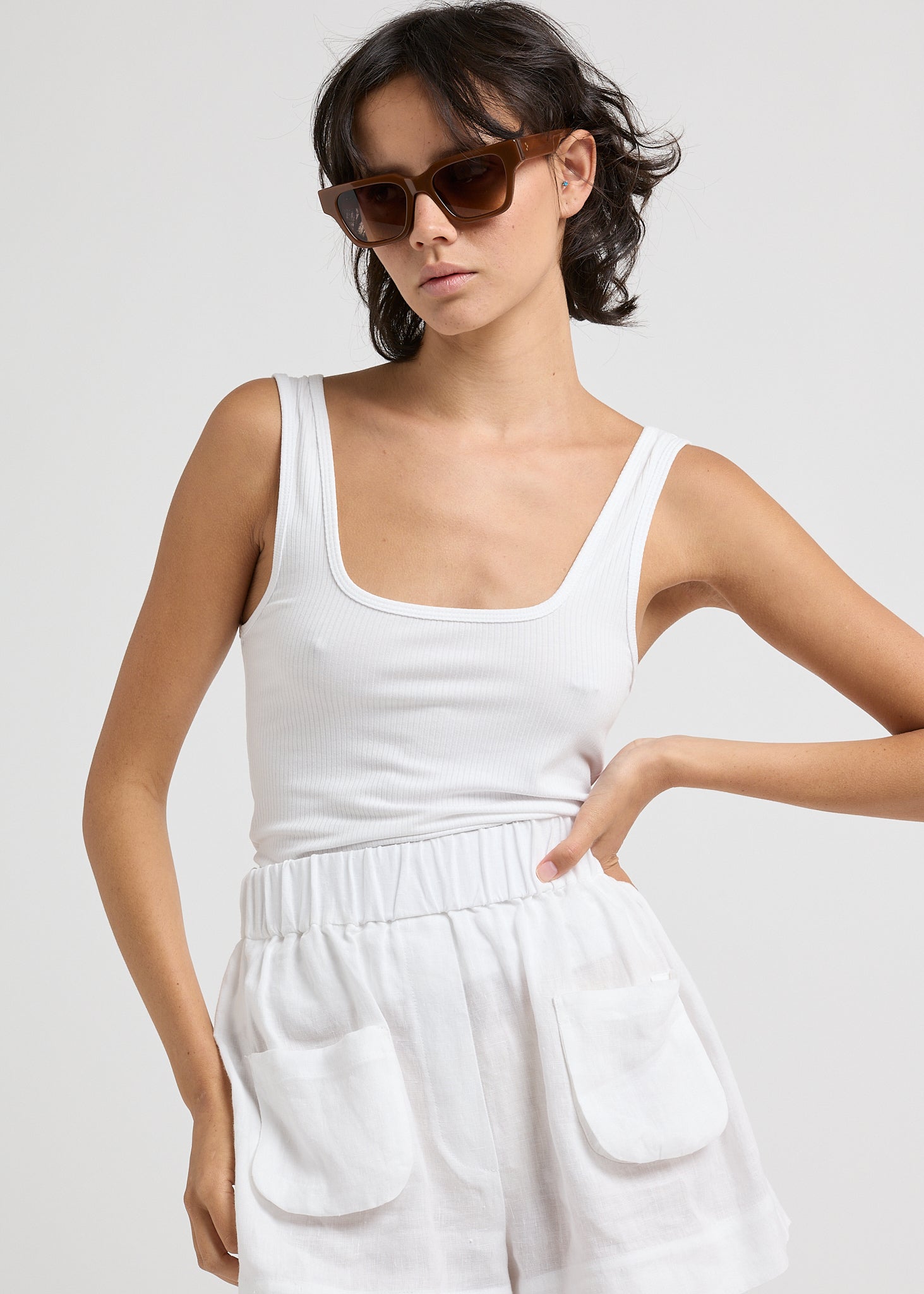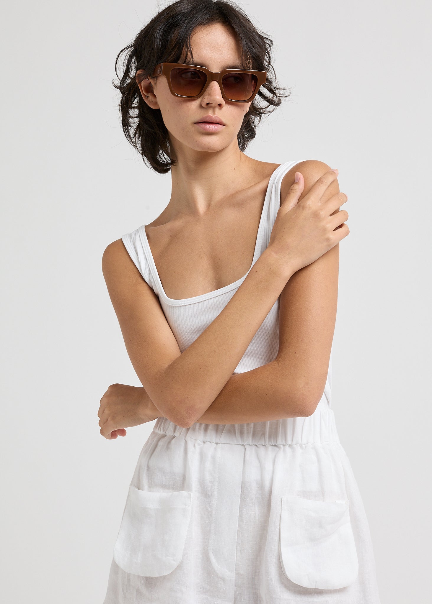 THIRTY FIVE is a sleek rectangular-shaped sunglass. This model features a well-rounded design with a thick sturdy acetate structure. Crafted using fine hand-polished Italian acetate and finished with premium Japanese CR39 lenses