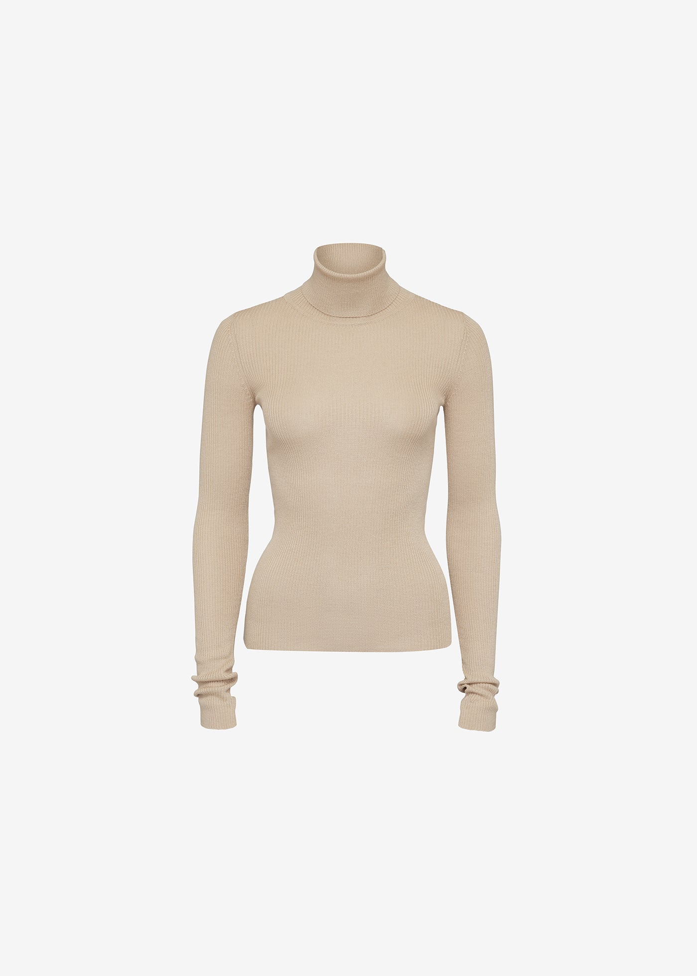 A transeasonal staple knitted in a fine silk cashmere for the most luxurious base layer. Featuring a rib knit and a high neck, which can be rolled or scrunched. Designed for a slim fit for additional warmth.