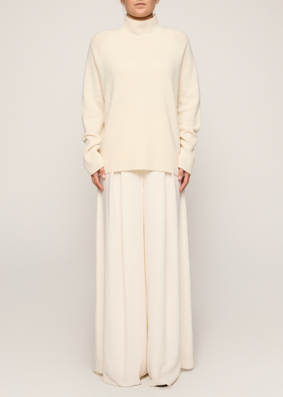 A timeless essential for the cooler months, the June Knit is knitted from luxuriously soft spun cashmere. The knit is designed for an oversized fit with room to layer as the seasons change. Details include, a high neckline, raglan sleeves and wide ribbed cuffs.