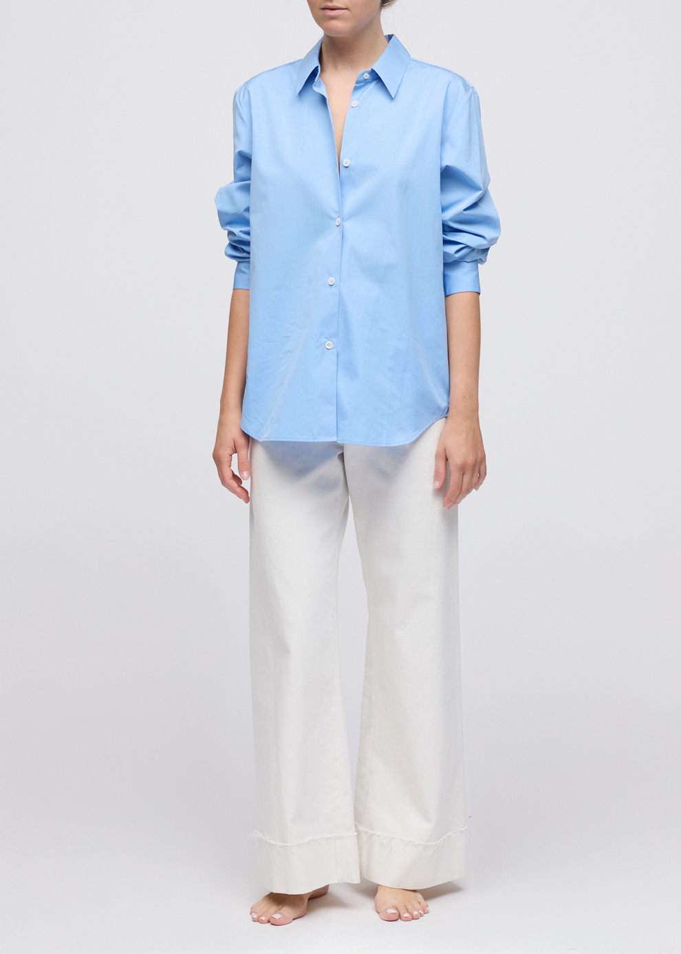 White Story's latest iteration of a classic shirt, designed for all occasions. With a refined silhouette and high end finishings, pair with suit pants for the office, or jeans for a casual late summer day.