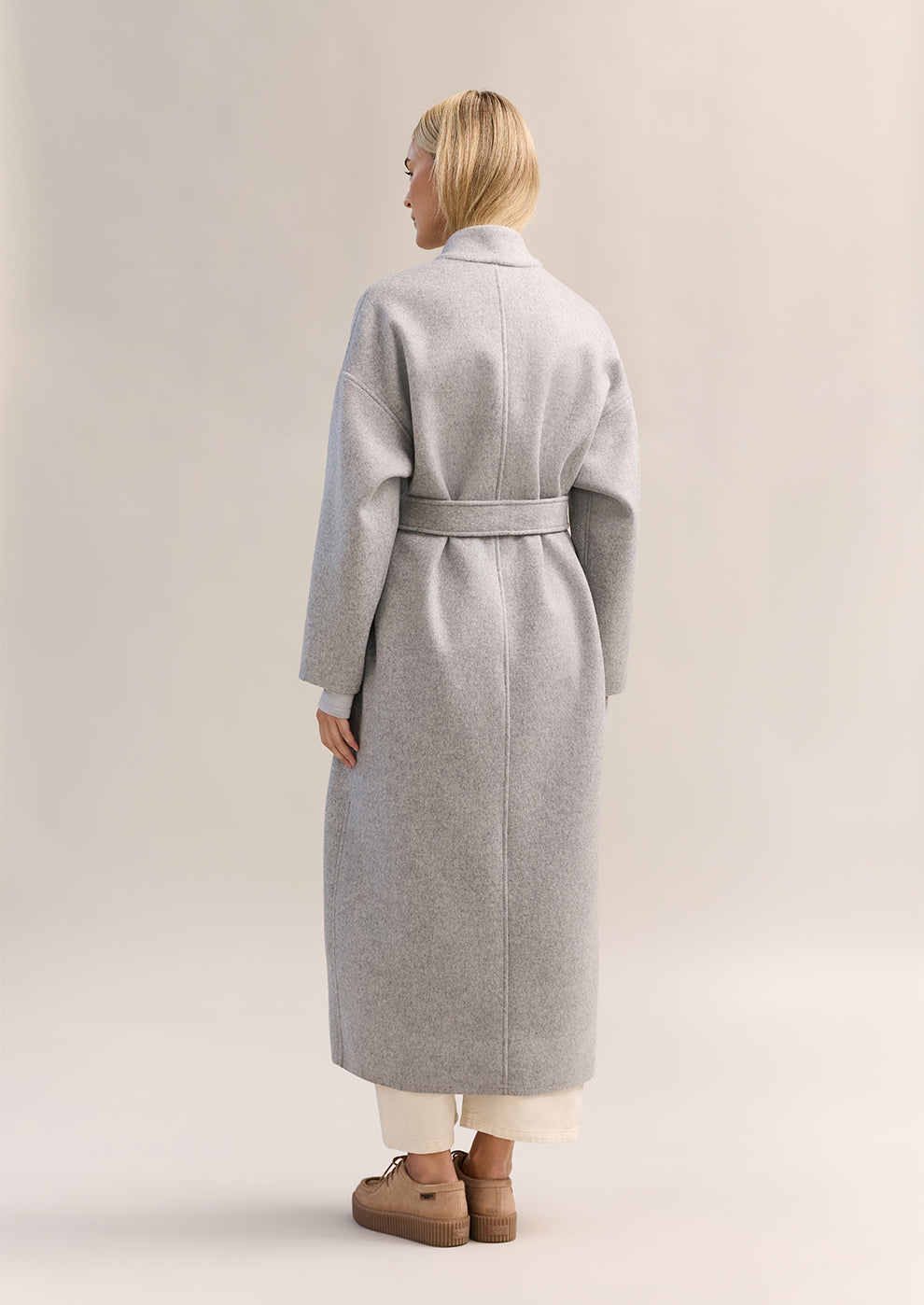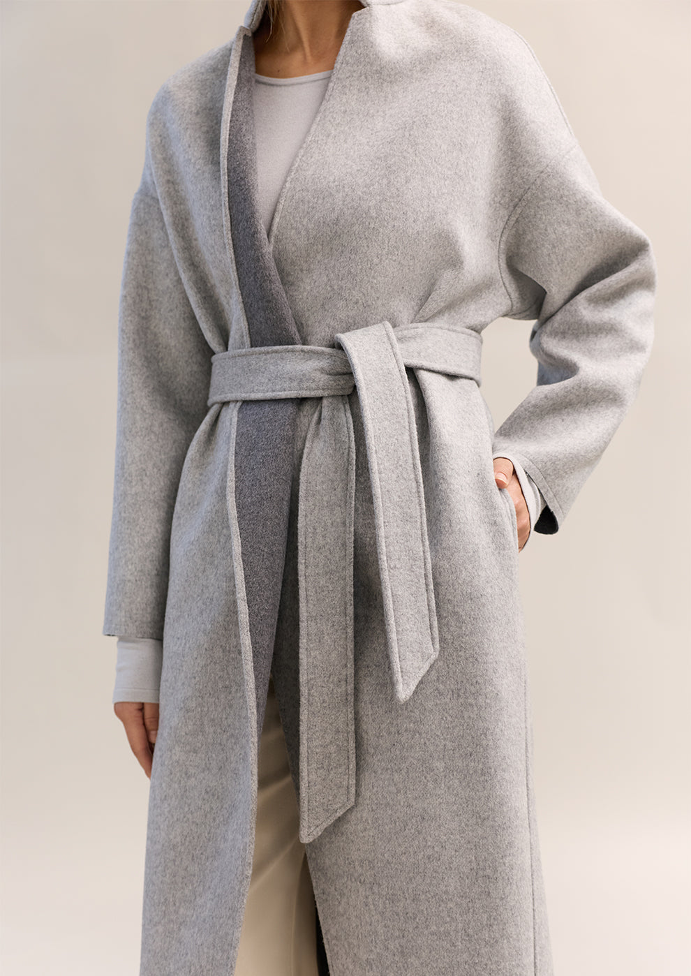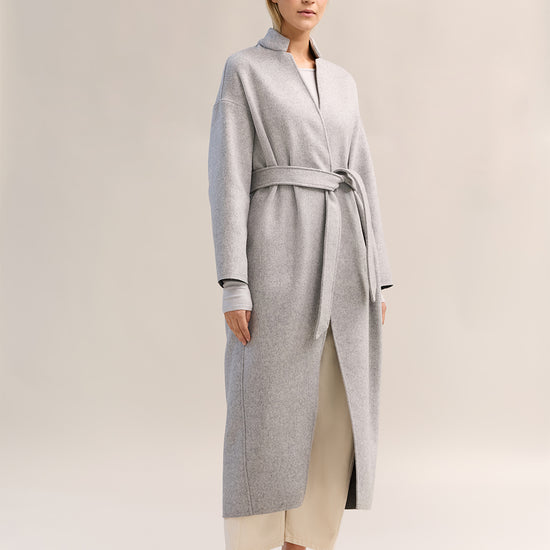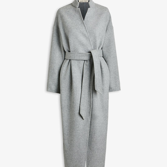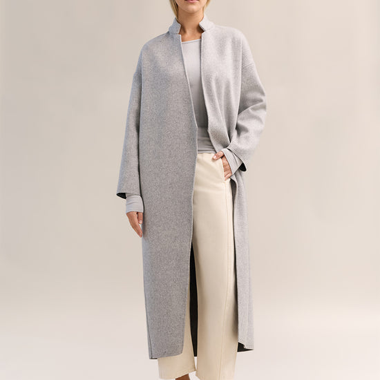 The Kingston Coat is the ultimate in effortless layering, crafted from a soft wool blend for both function and style. Designed with an oversized silhouette, it features a mandarin collar, dropped shoulders, raw hem sleeves, and a maxi-length finish.