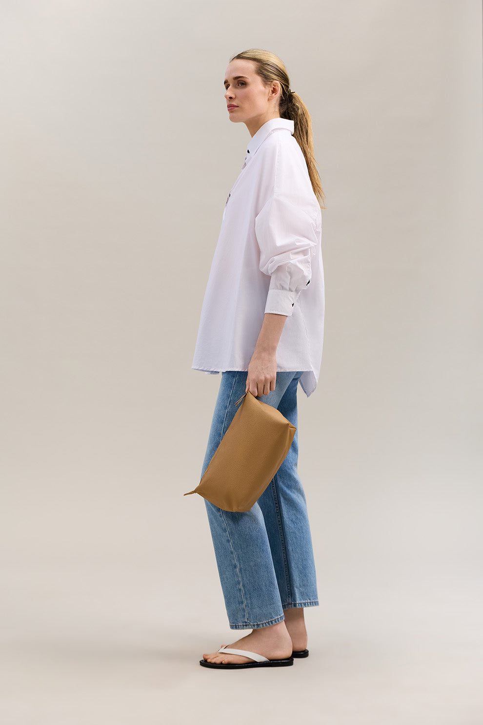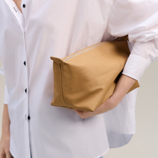 Crafted from 100% premium cow leather, the Lucinda Cosmetic Bag offers a soft, slouchy silhouette that exudes understated luxury. Designed with a waterproof nylon lining to keep your beauty essentials protected, whether at home or on the go. A timeless addition to your vanity or suitcase.