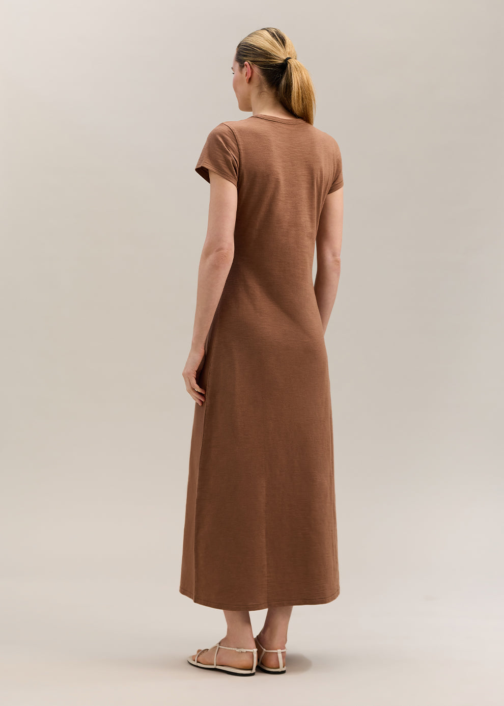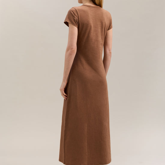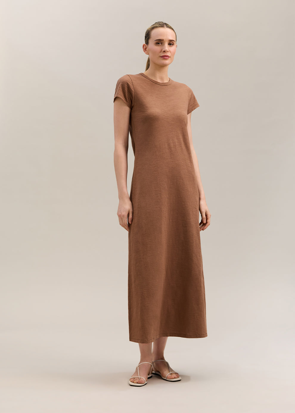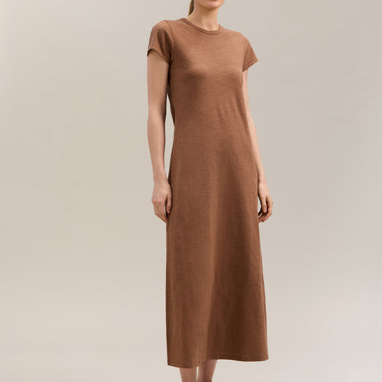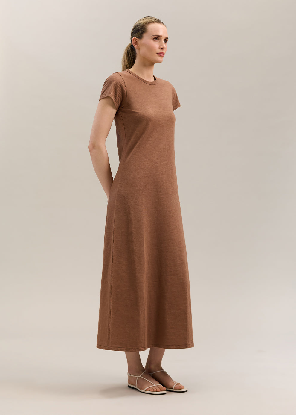 The Luna Dress is a t-shirt style crafted from 100% cotton, borrowing the fit of our best-selling Hana Tee. With cap sleeves, a crew neckline, and an A-line midi silhouette, it’s perfect for balmy days or easy layering between seasons.