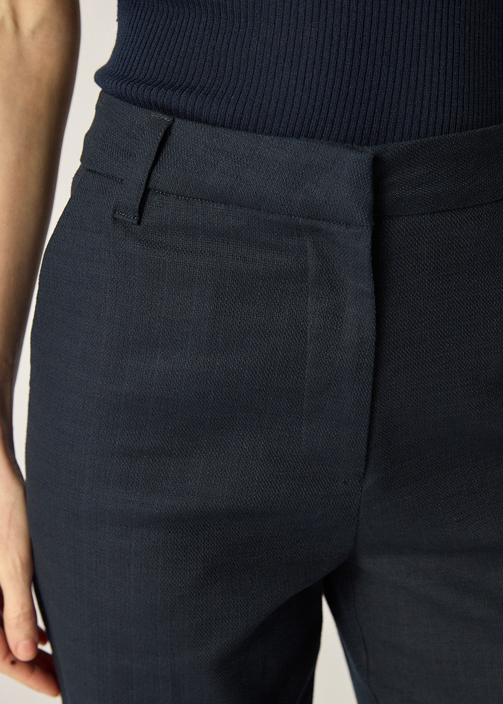 The Martina Pant is a tailored stovepipe style with a straight leg silhouette and clean finish. Designed to sit neatly at the waist and hip, it offers a refined, timeless fit.