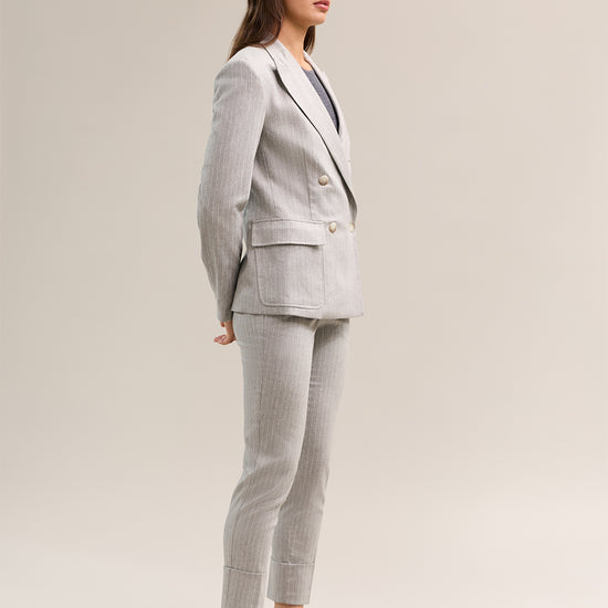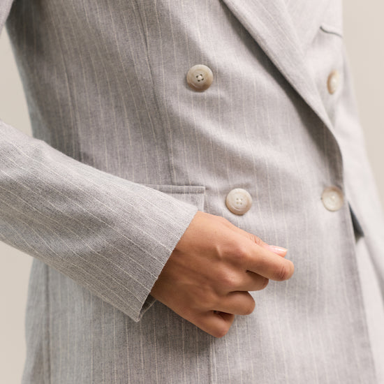 The Patricia Blazer offers a relaxed yet refined silhouette, balancing classic menswear tailoring with contemporary femininity. Featuring a double-breasted closure, notched lapel, and full lining, it embodies understated elegance and versatility.