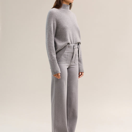 The Patrick Jean has become a White Story classic, reimagined for winter in grey-washed cotton denim with the perfect amount of stretch for all-day comfort. Featuring front patch pockets, a wide-leg silhouette, and topstitch detailing.