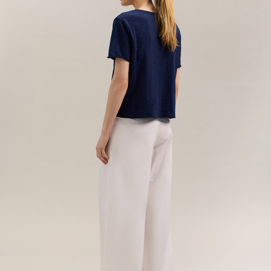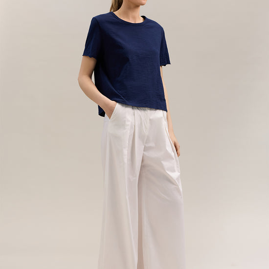 The Rhodes Boxy Tee is crafted from 100% cotton and designed with a relaxed, boxy fit. Featuring a crew neckline, short sleeves, and a raw sleeve hem, it’s an effortless staple for everyday wear.