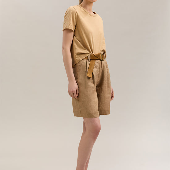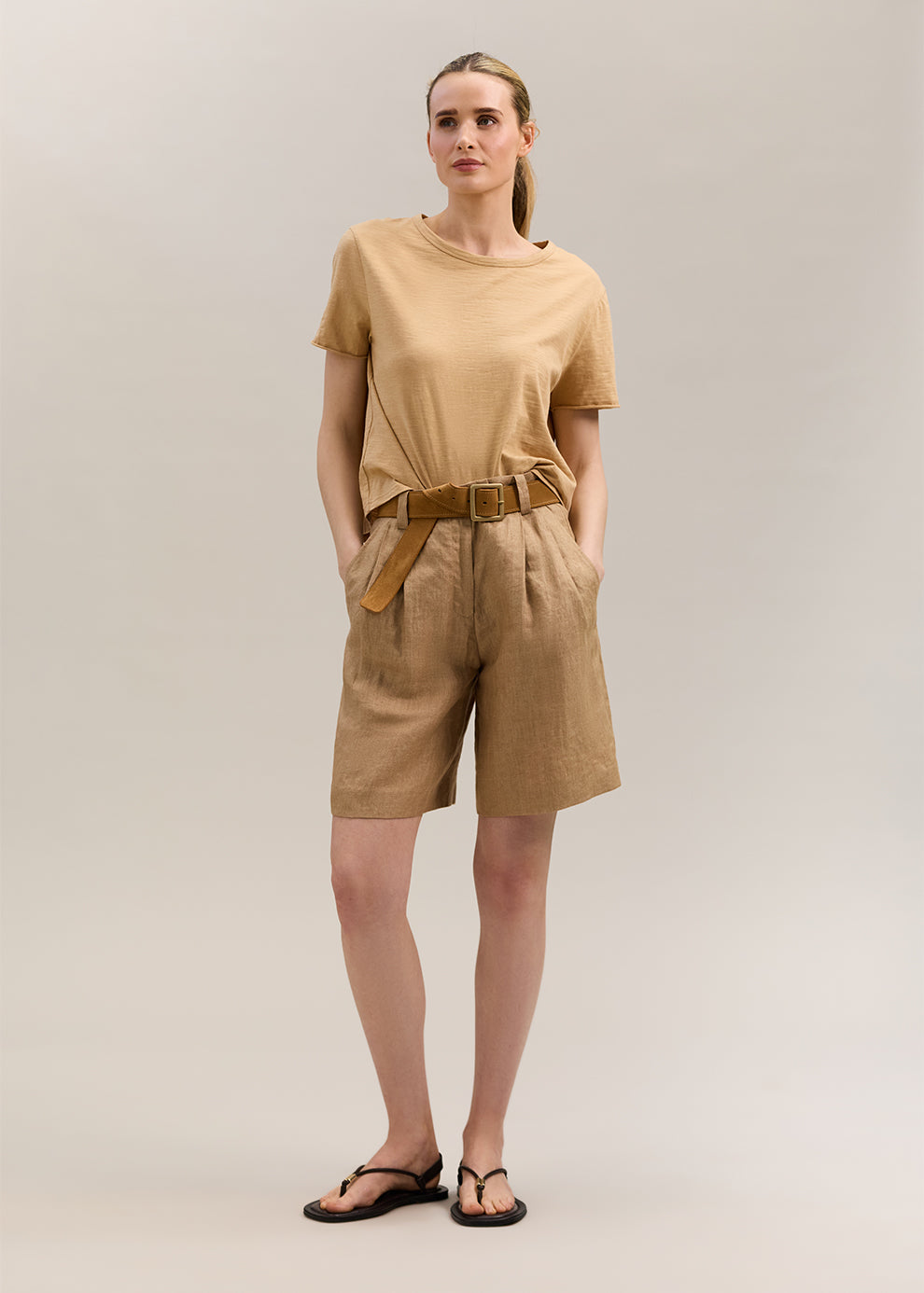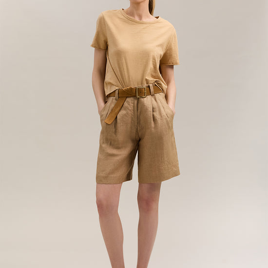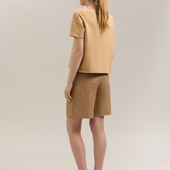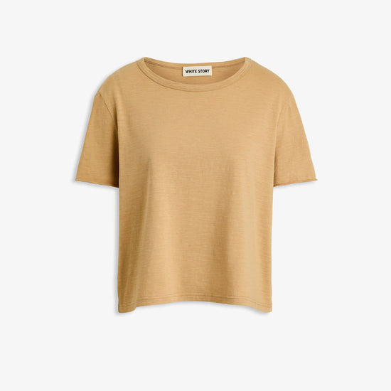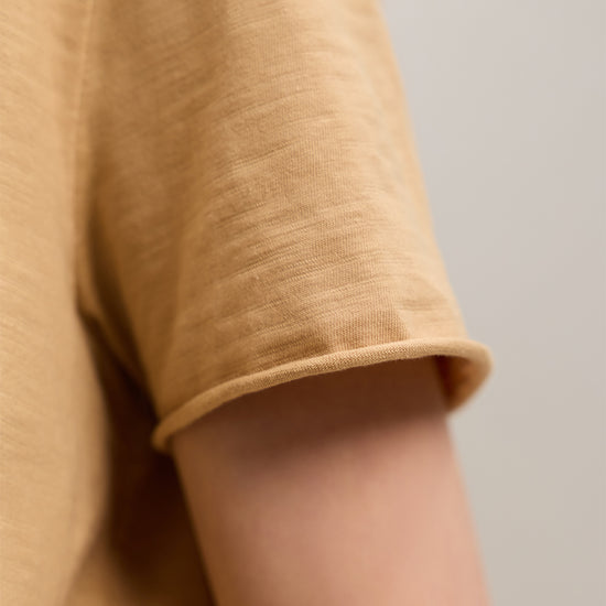 The Rhodes Boxy Tee is crafted from 100% cotton and designed with a relaxed, boxy fit. Featuring a crew neckline, short sleeves, and a raw sleeve hem, it’s an effortless staple for everyday wear.