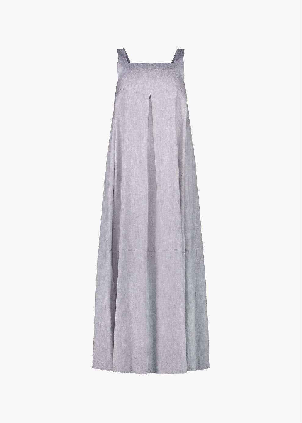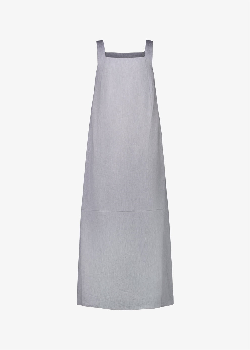 The Sahara Dress, reimagined for SS'24 in a luxe, linen and cotton blend. This sleeveless maxi dress features a square neckline, wide shoulder straps, a-line silhouette for a voluminous look, in seam pockets, and zip closure at side seam. Complement this effortless piece with sandals for an easy summer look.