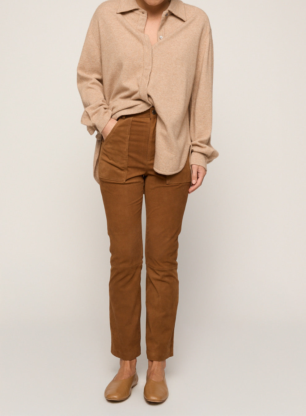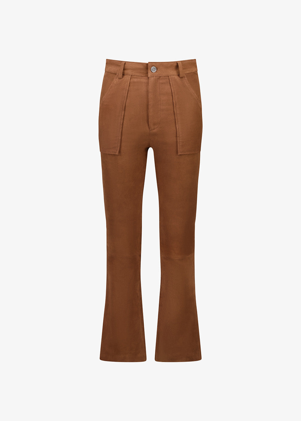 Crafted from 100% lamb leather and stretch suede, these high-waisted Samuel jeans hug the hips and thighs, flaring at the knee. Featuring front pocket detailing, they combine sophistication and versatility for a standout winter wardrobe piece.