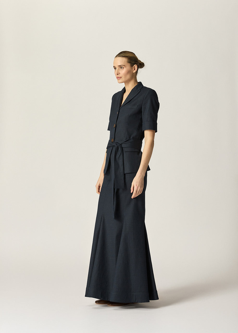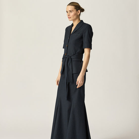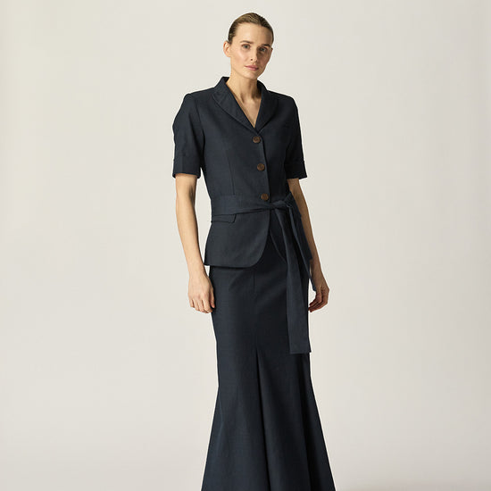 The Viktor Short Sleeve Blazer is a warm-weather update on our classic style, featuring elbow-grazing cuffed sleeves and a waist tie for a more defined silhouette. Crafted from a structured Japanese cotton blend, it’s perfect for elevated Spring outfitting.