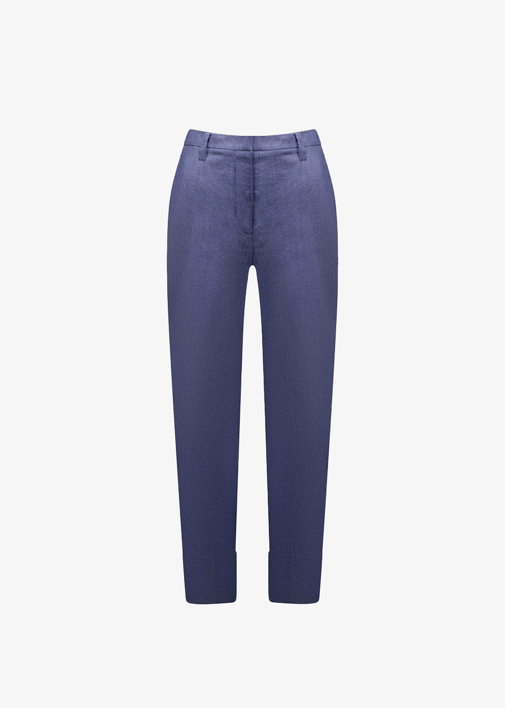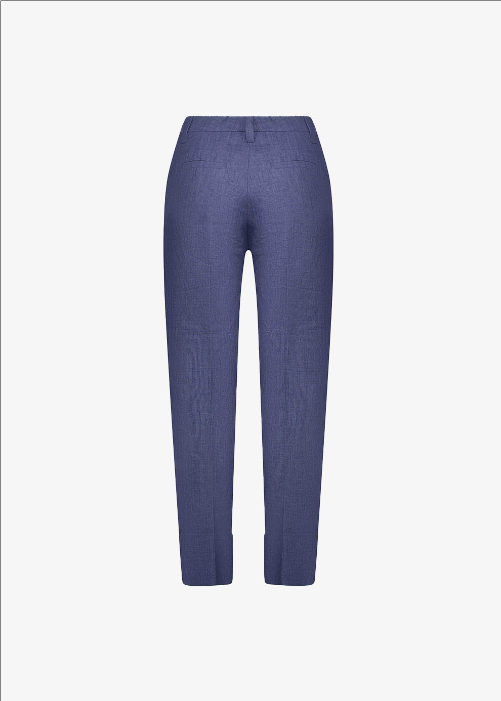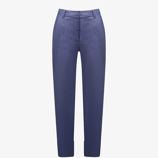 The Viktoriya Suit Pant combines the sophistication of suiting with a relaxed feel. Crafted from a premium Belgian Linen featuring a subtle houndstooth print in shades of blue, the trouser features a mid-rise. The tapered leg is finished with a turnback ankle length cuff for a sharp look. Pair with our Viktor Blazer for a polished suited ensemble.